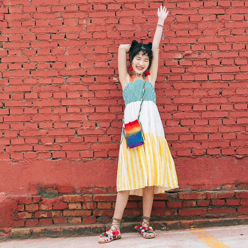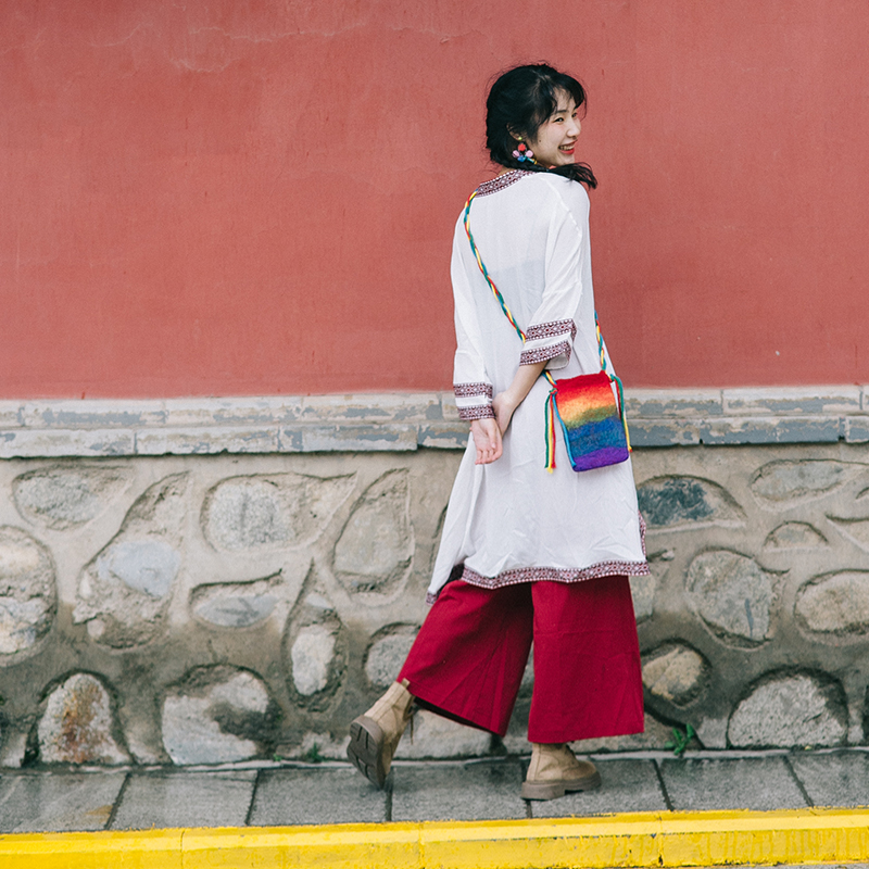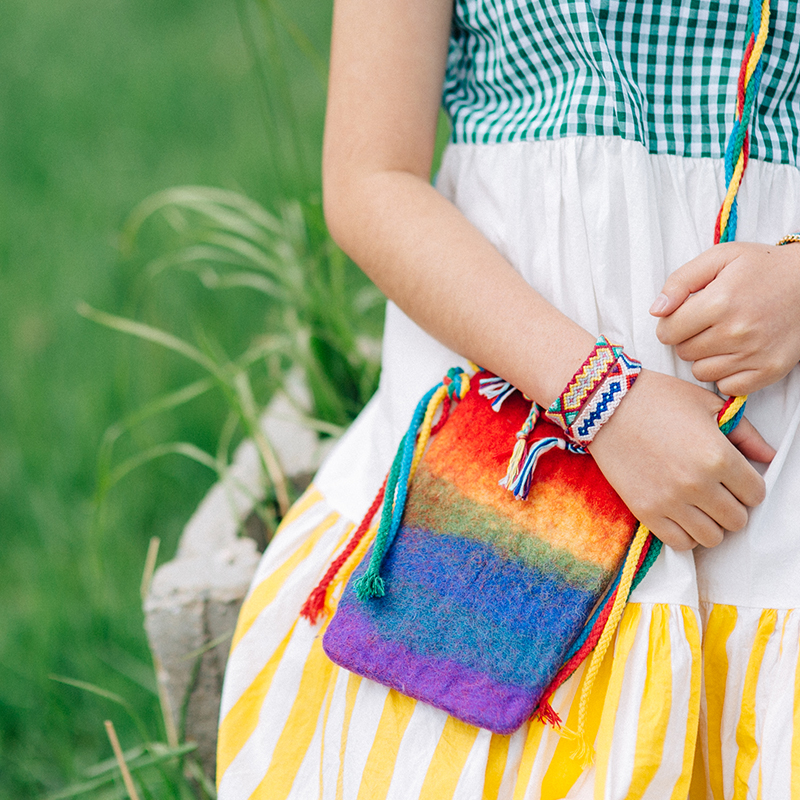Nepal handmade wool felt rainbow bag Gradient color color mobile phone bag Coin purse Shoulder crossbody bag