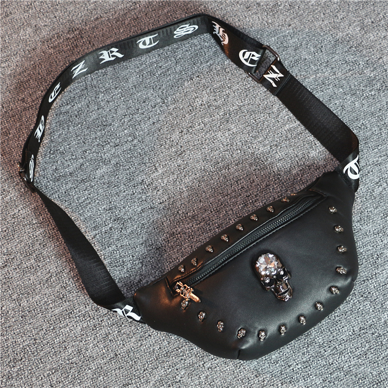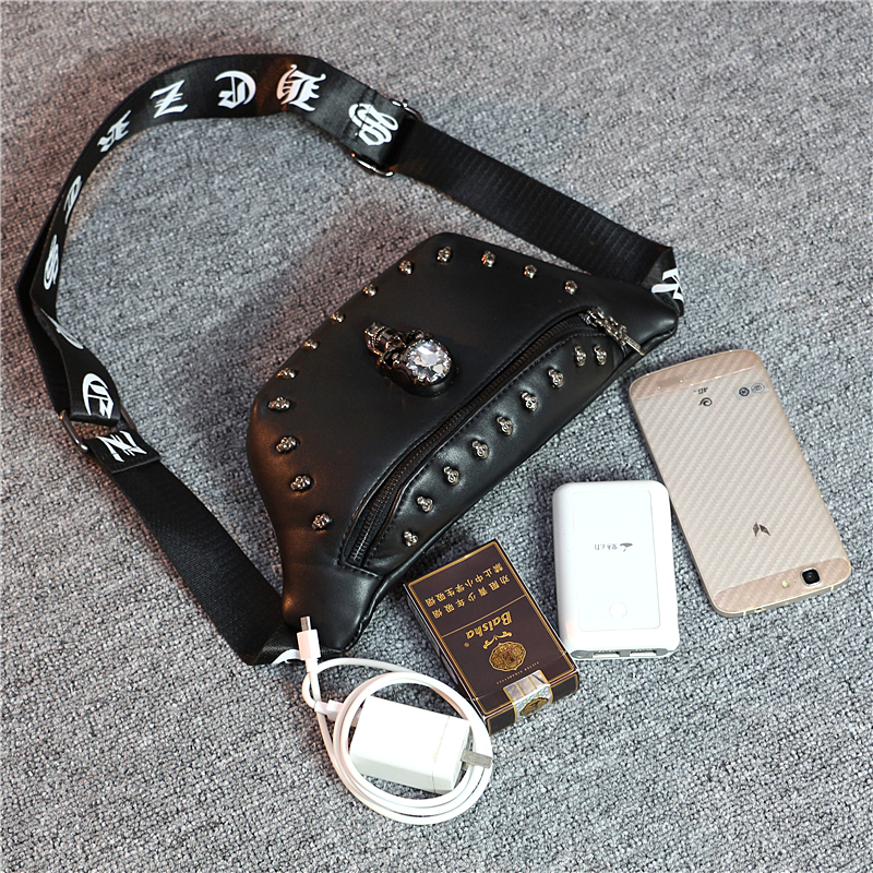 Trendy men's chest bag 2019 new Korean version of the fashion men's and women's casual small shoulder bag skull rivet waist bag mobile phone bag
