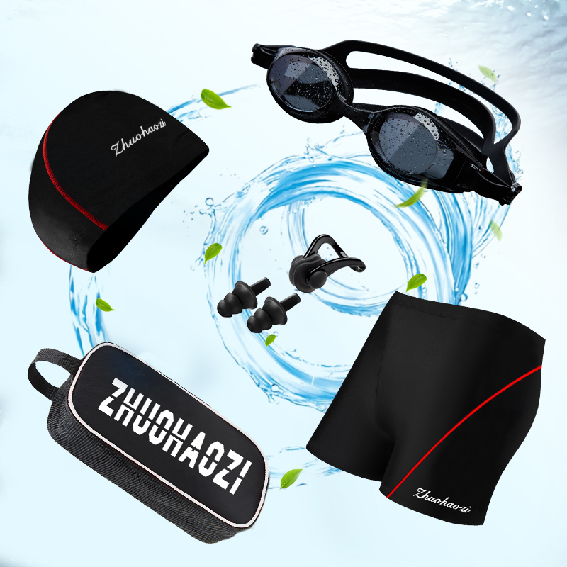 Swimming trunks men's boxer five-point anti-embarrassing men's swimsuit loose large size hot spring swimming trunks suit swimming goggles cap equipment