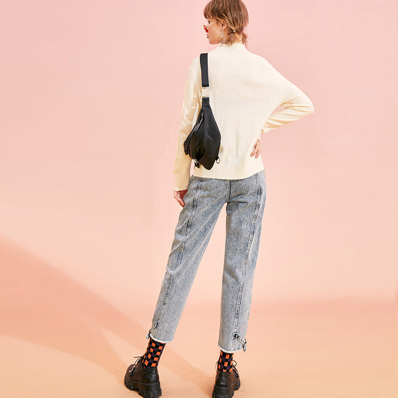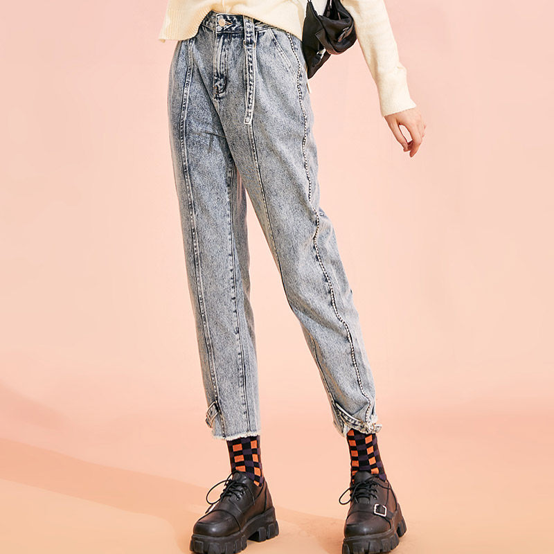 Jamor autumn new Harun pants loose with high waist jeans Korean version of slim and white turnip old daddy long pants children