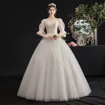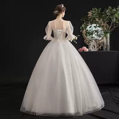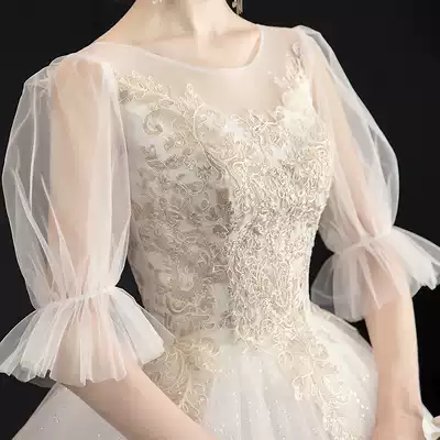 Main light wedding dress 2021 new bride shoulder French bubble sleeve thin simple super fairy