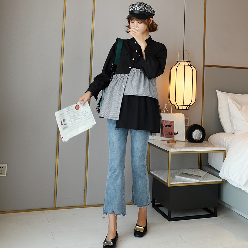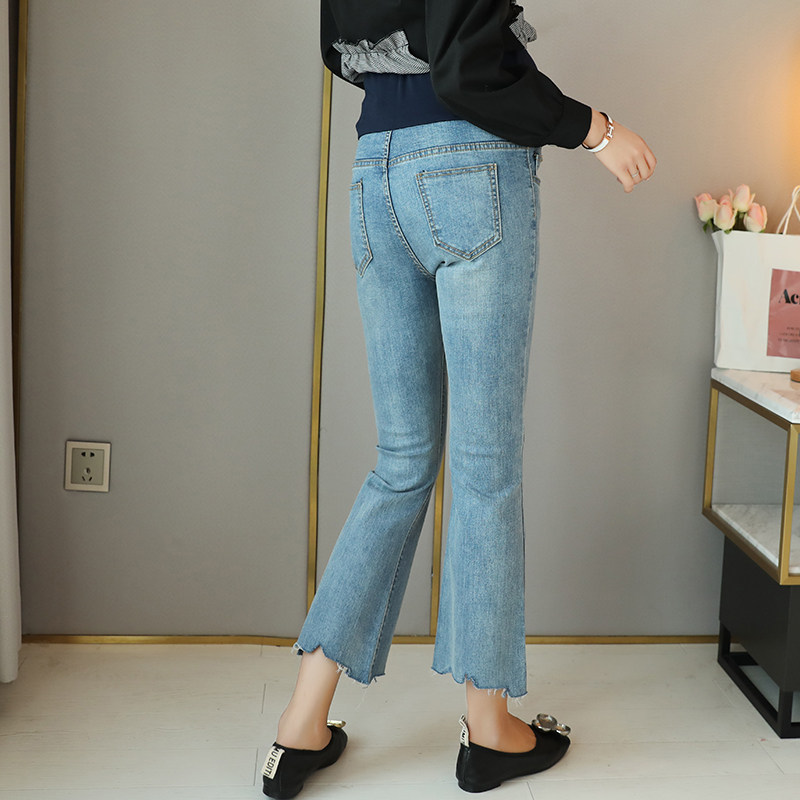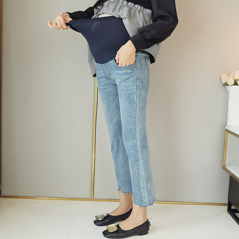 Pregnant Woman Microlao Jeans Fall Han Edition 2021 New Fashion Gestation Momo Fashion Fall Slean 90% Pants