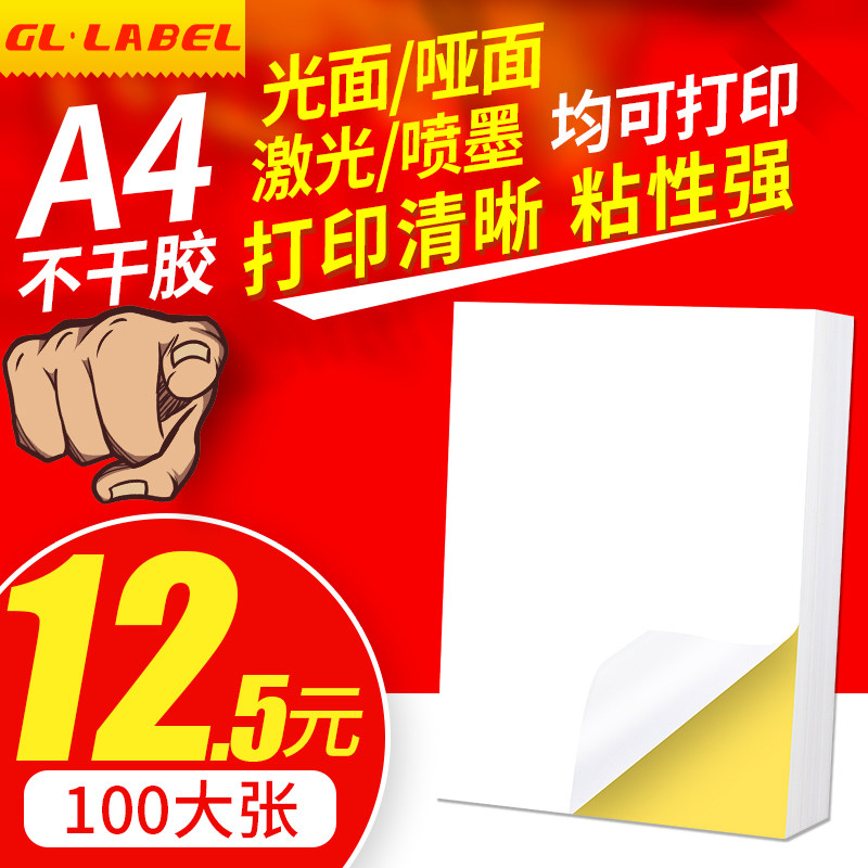 A4 self-adhesive printing paper 100 sheets printing sticker adhesive adhesive matte sticker laser inkjet matte Kraft paper self-adhesive a4 internal cutting color adhesive sticker glossy