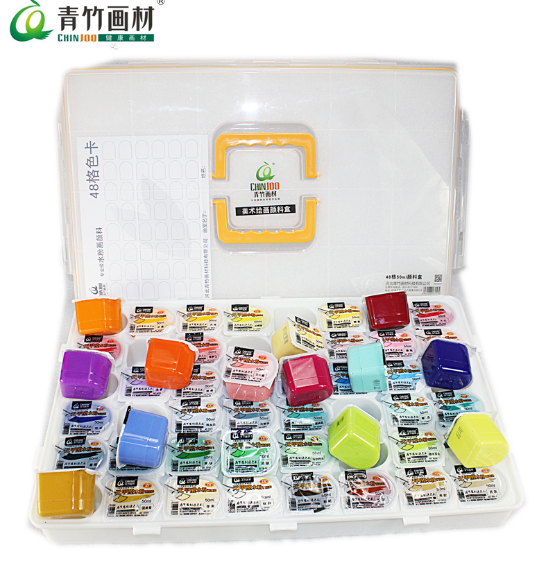 Qingbamboo 48 color water powder pigment Jelly pigment Set Single 50ML pack 48 grid pigment fine arts box Fine arts test joint examination without formaldehyde flow white painting pigment Multi - province
