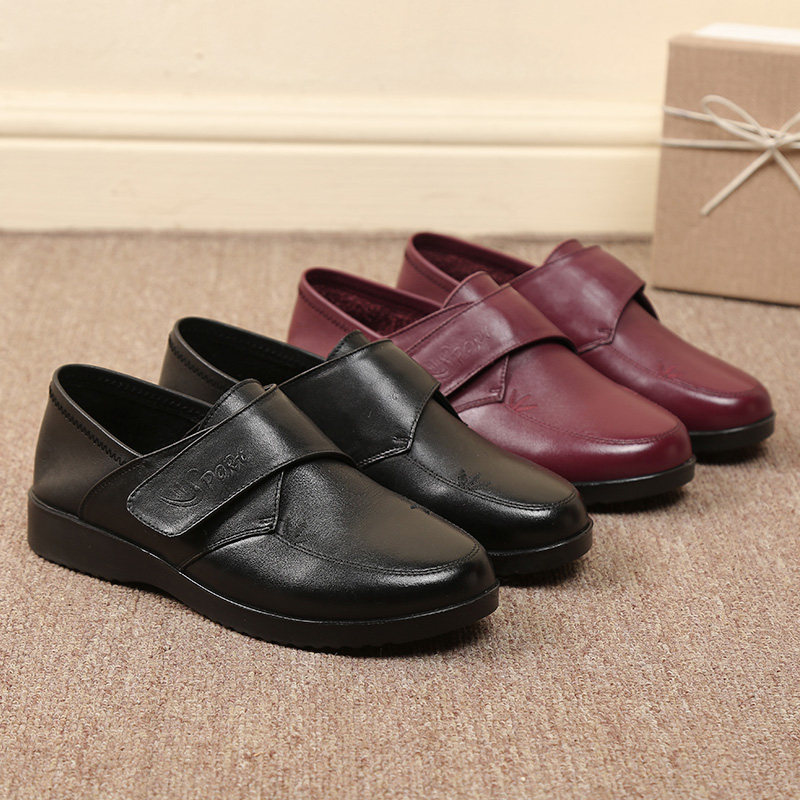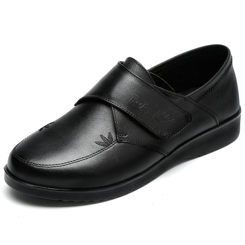 Women's shoes spring and autumn leather mother shoes round toe soft bottom comfortable middle-aged and elderly grandma leather shoes flat shoes women's large size - Taobao