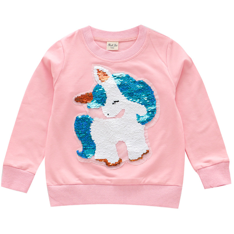 Girls pure cotton color-changing sequined sweater spring and autumn children's clothing baby cartoon long-sleeved foreign style pullover round neck top