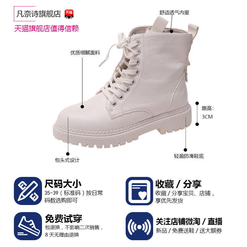 Martin boots women's spring and autumn 2021 new British style white thin and thin winter thick bottom inner heightened small short boots