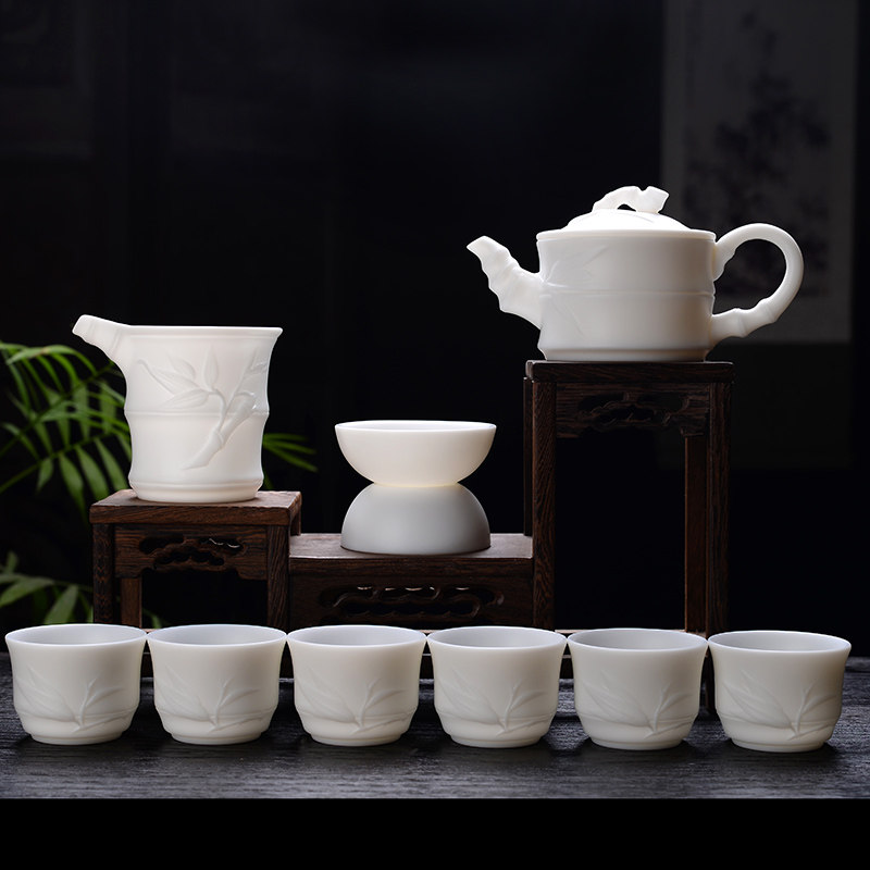 Mutton Jade Bamboo Pot Tea Set Set Mutton Jade Pixiu Tea Set