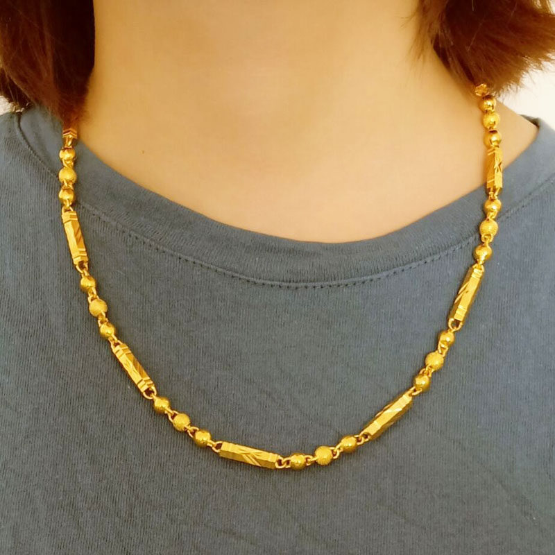 Gold necklace 9999 pure gold men and women buddha beads hexagonal column hollow transport beads round beads pure gold jewelry