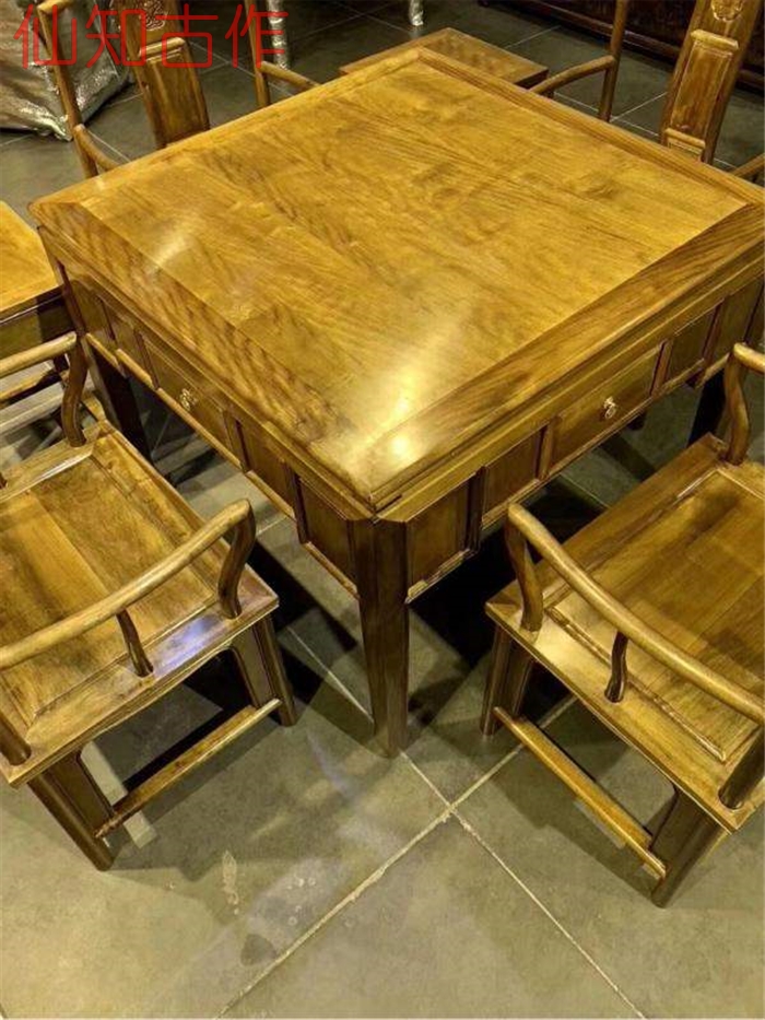 Xianzuo Xiaoye Zhennan Mahjong Table Seven sets of sets Ming and Qing Antique Imitation Ancient Casual Square Table Gold Silk Nan Red Wood Furniture Mortises-Taobao