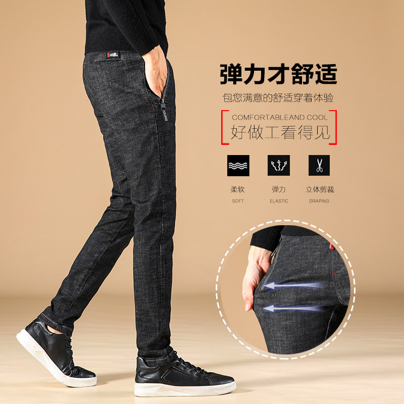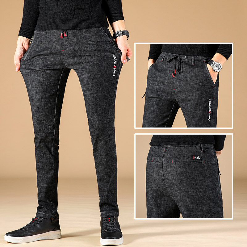 Spring Casual Denim Jeans Male Tide Cards Letters Print Tightness Student Teen Sashimi Pants Spring And Autumn