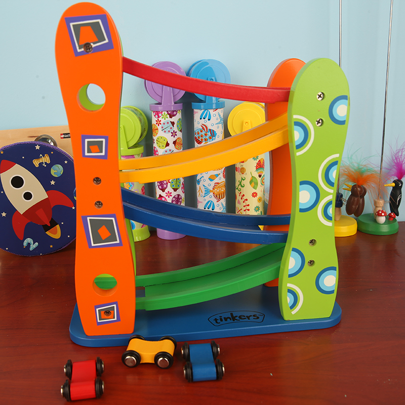 Children's slide track toy Wooden racing car Four-layer gliding car speed car baby gift 1-4 years old