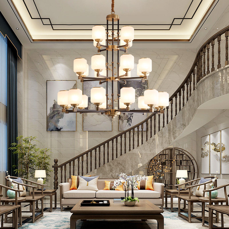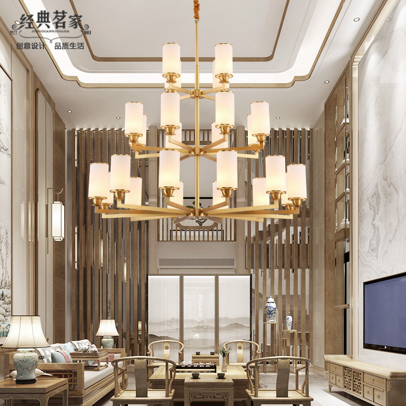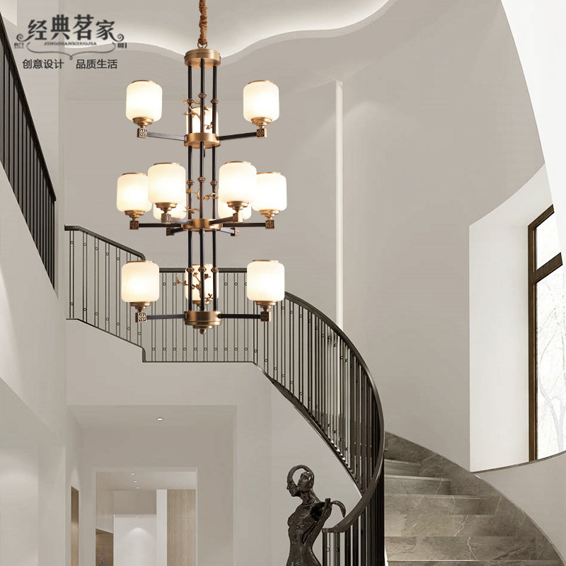 Duplex building villas big chandelights New Chinese all-copper Living room Lights modern building hollow pick up empty three layers of copper lamps