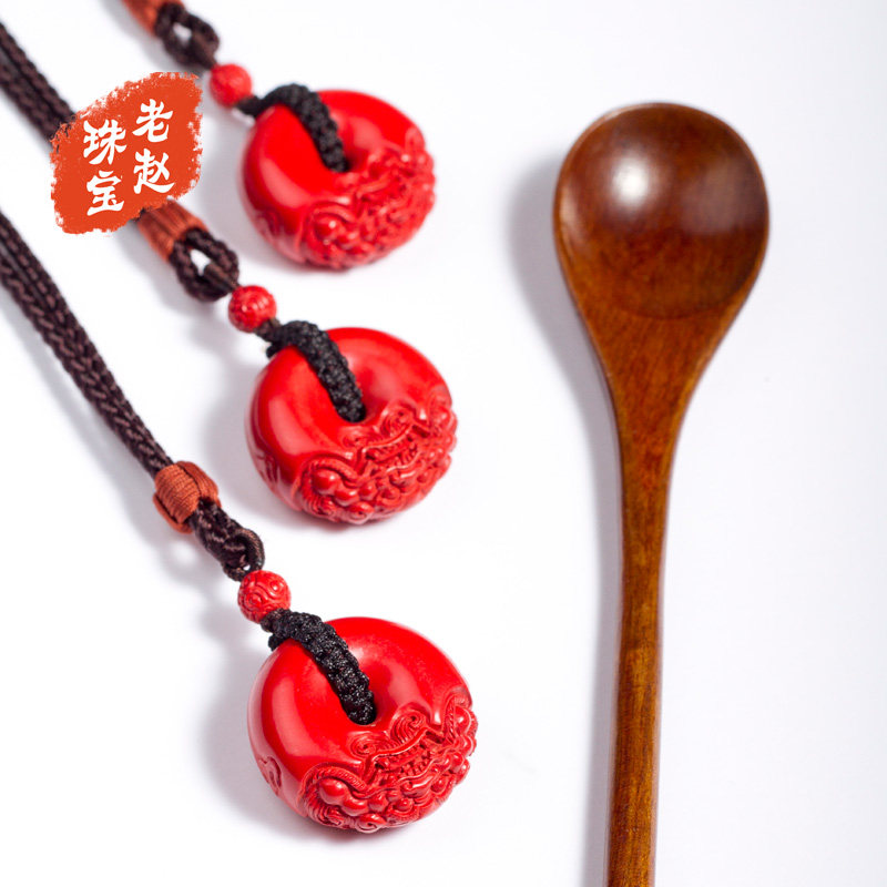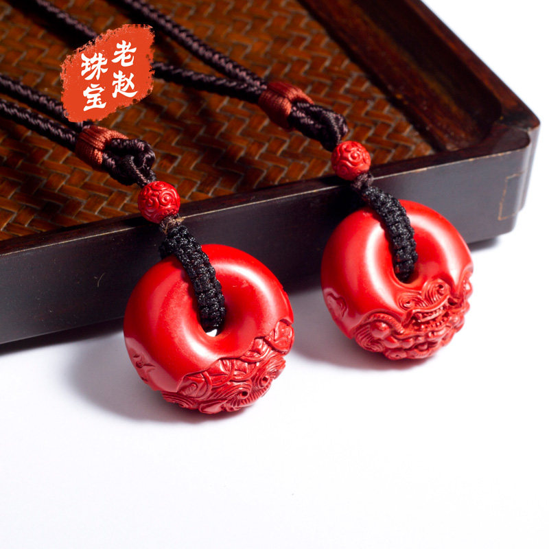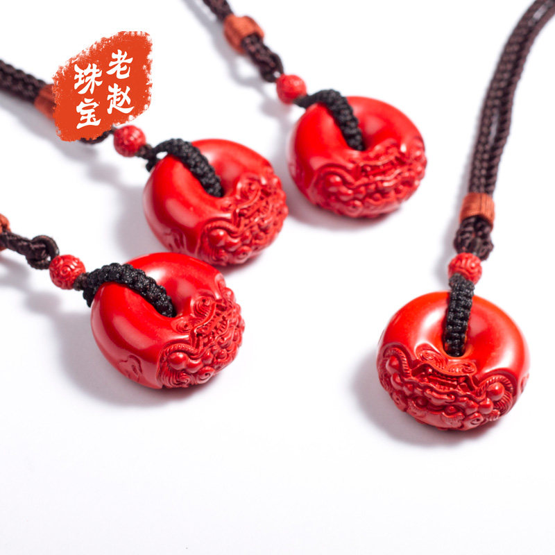 Natural high content of cinnabar hand string Hand chain pendant Cinnabar peace buckle bracelet ear needle Lao Zhao jewelry live