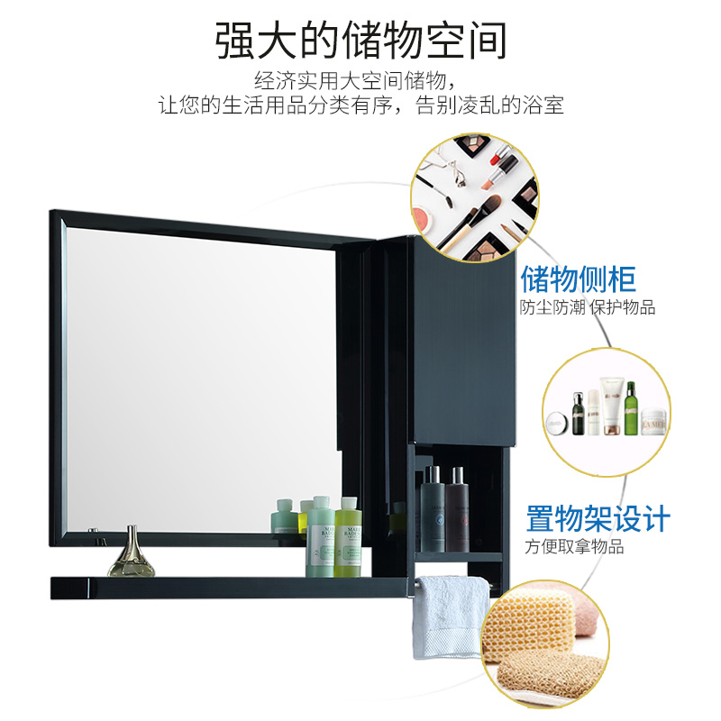 Bathroom Black stainless steel wash and make-up mirror with shelf Toilet powder room side cabinet Toilet Wall-mounted
