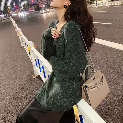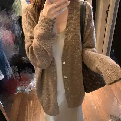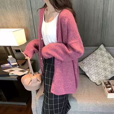 Wool knitted cardigan women's spring and autumn Korean version loose and lazy medium and long version simple temperament with retro sweater jacket