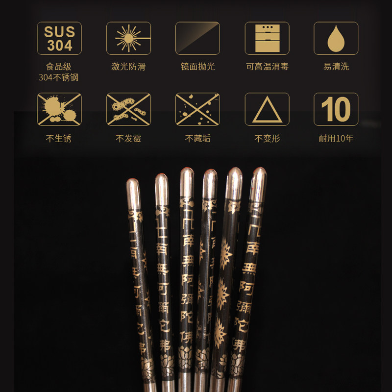 (Buy 2 Get 1 Free) NANWO Amitabha Temple Chopsticks 304 Stainless Steel Iron Fast Children Household Anti-skid High-grade Anti-mildew