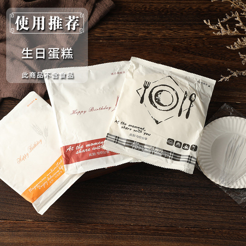 Birthday cake tableware fork spoon set plastic disposable dinner plate cutlery tray baking set knife and fork dish combination