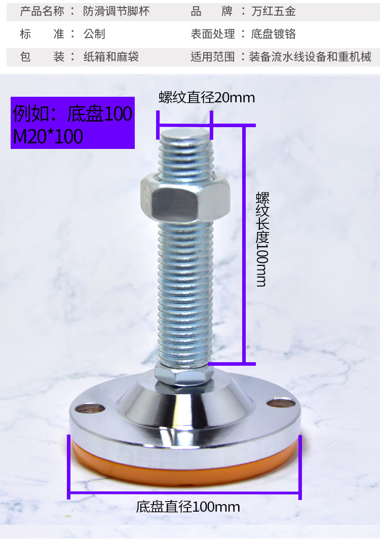 D60 chromed carbon steel foot cup heavy shockproof anti-slip fixed anchor machine tool adjustment supporting foot ground foot screws