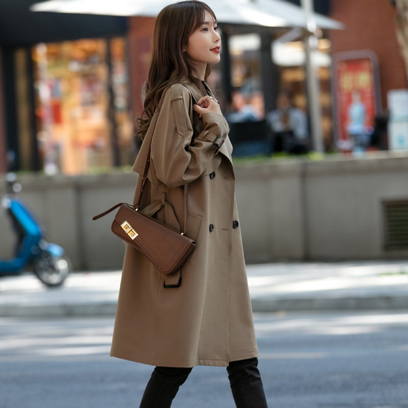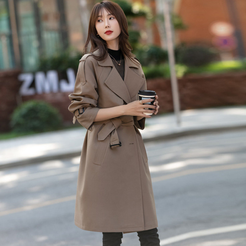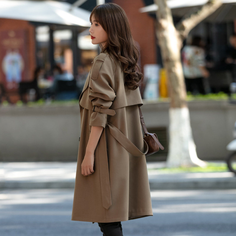 Trench coat women's long English style small man 2021 Spring and Autumn New Korean temperament this year popular coat women's clothing