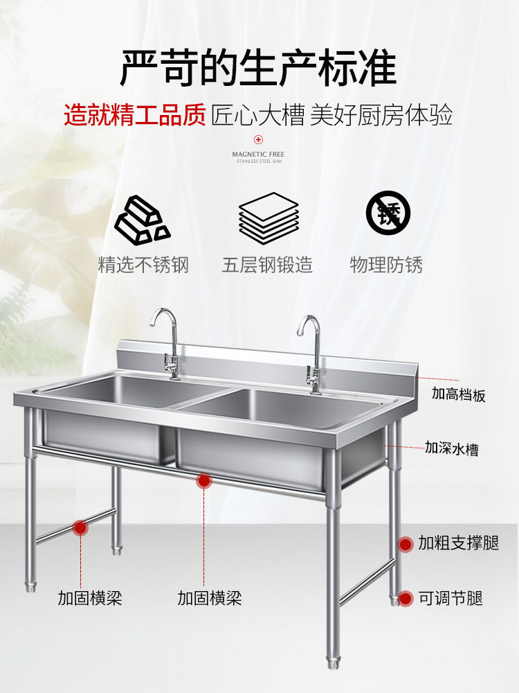 Commercial stainless steel sink tank double sink sink disinfectant pool disinfectant pool kitchen with bracket single sink