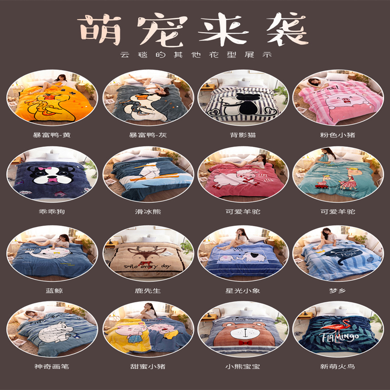 YY -- Fury Duck Yellow -- Double Layer Blanket YY -- Storm Rich Duck Ash -- Double Layer Blanket YY -- Back Movie Cat -- Double Layer Blanket YY -- Pink Piglet -- Double Layer Blanket Y