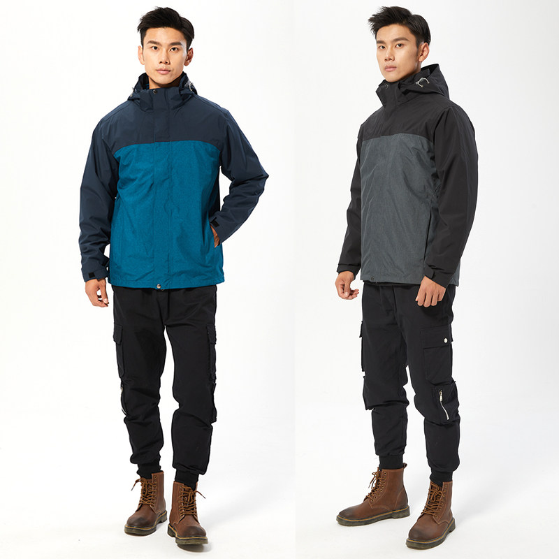 Jacket men's three-in-one plus velvet thickened stitching two-piece windproof mountaineering jacket printed LOGO overalls