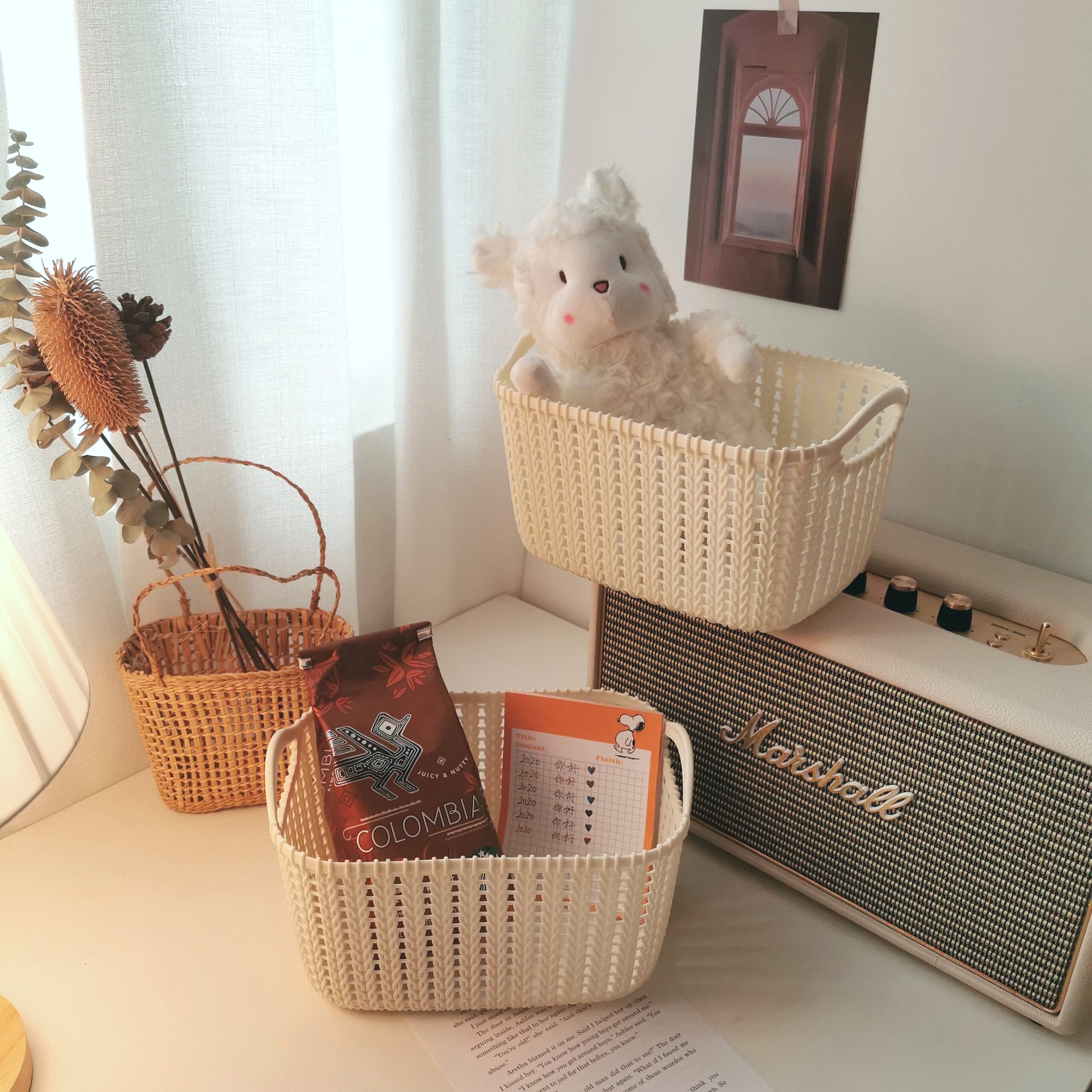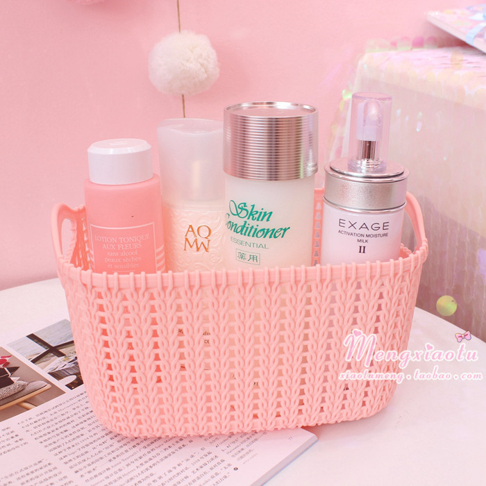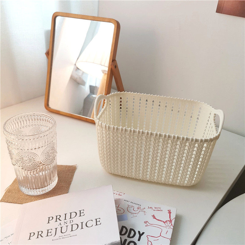 Girls Time Machine Desktop Cosmetics Storage Organizing Box Imitation Rattan Basket Weaving Sundries Storage Storage Basket