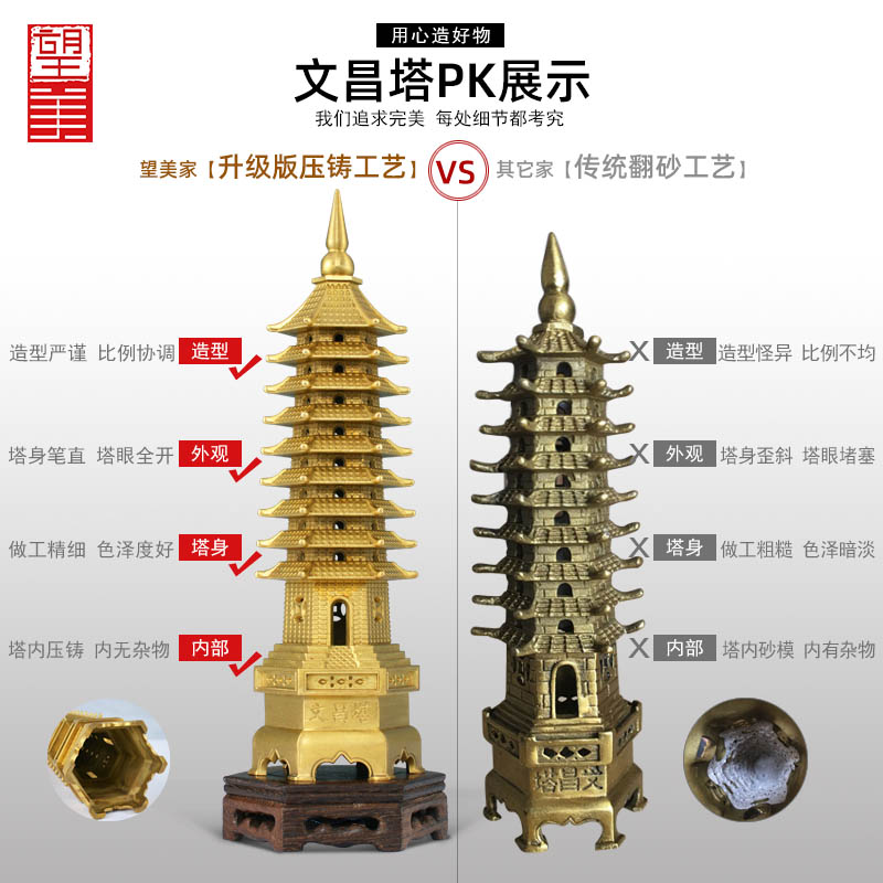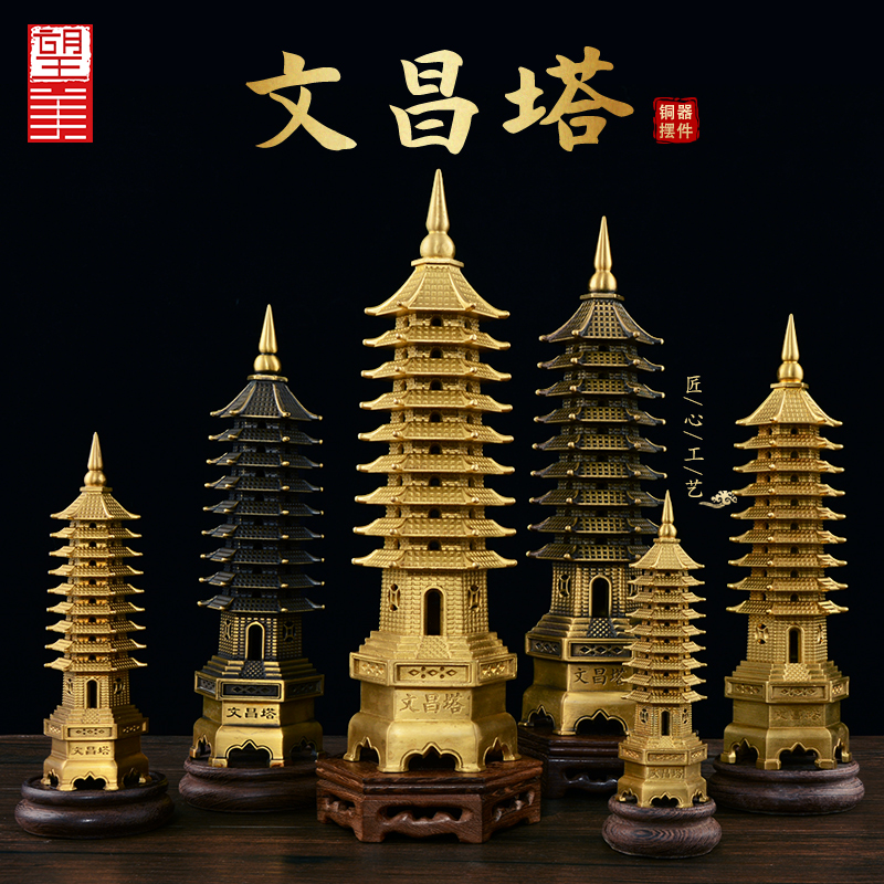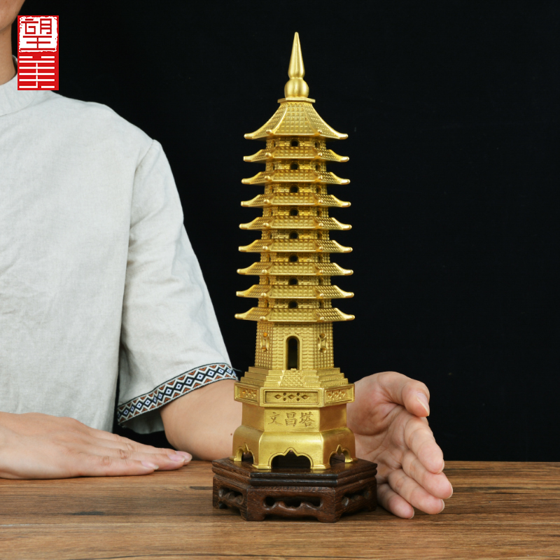 Copper Wenchang Tower 13 layers brass Wenfeng Tower Book room Swaying Pieces Students thirteen 9 Nine Layer Wenjusta Process Gift Pendulum Decoration