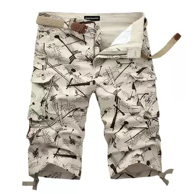 Summer sports shorts men's 7-point pants tooling multi-pocket loose large size casual pants cotton wear-resistant tide brand