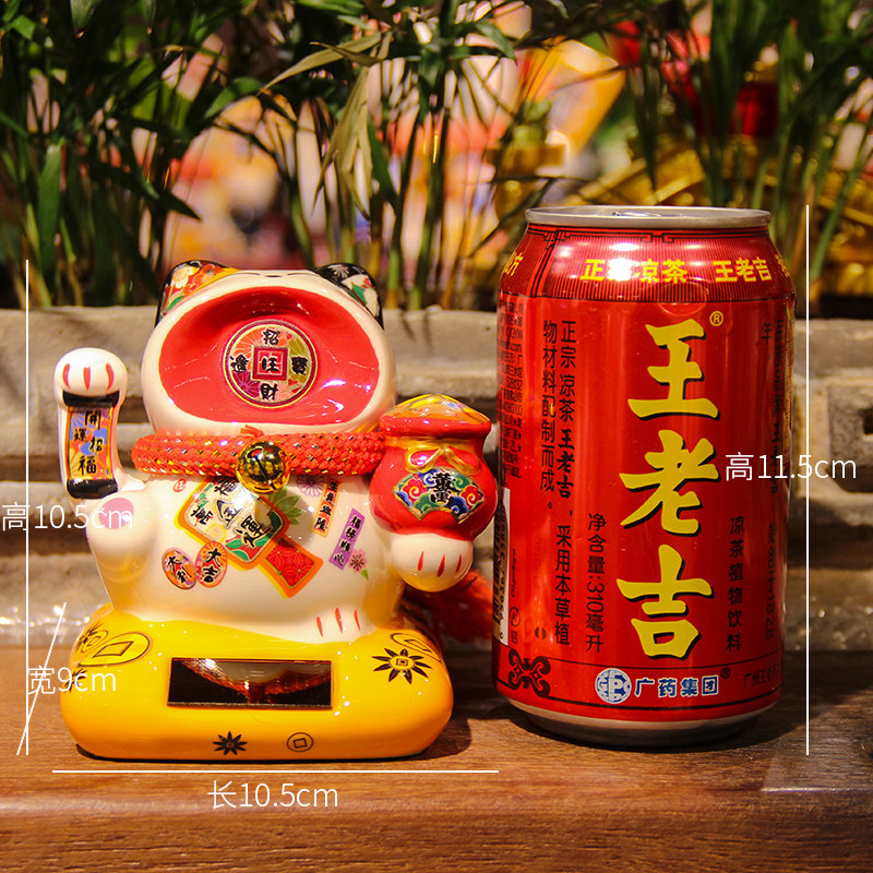 Lucky cat desktop small ornaments Ceramic solar shaking hands Lucky Cat creative car car mini home accessories