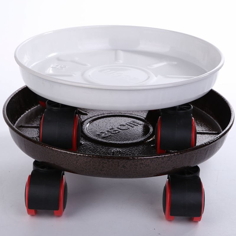 Thickened metal iron universal wheel potted flower stand tray with wheel mobile flowerpot tray round flowerpot base roller
