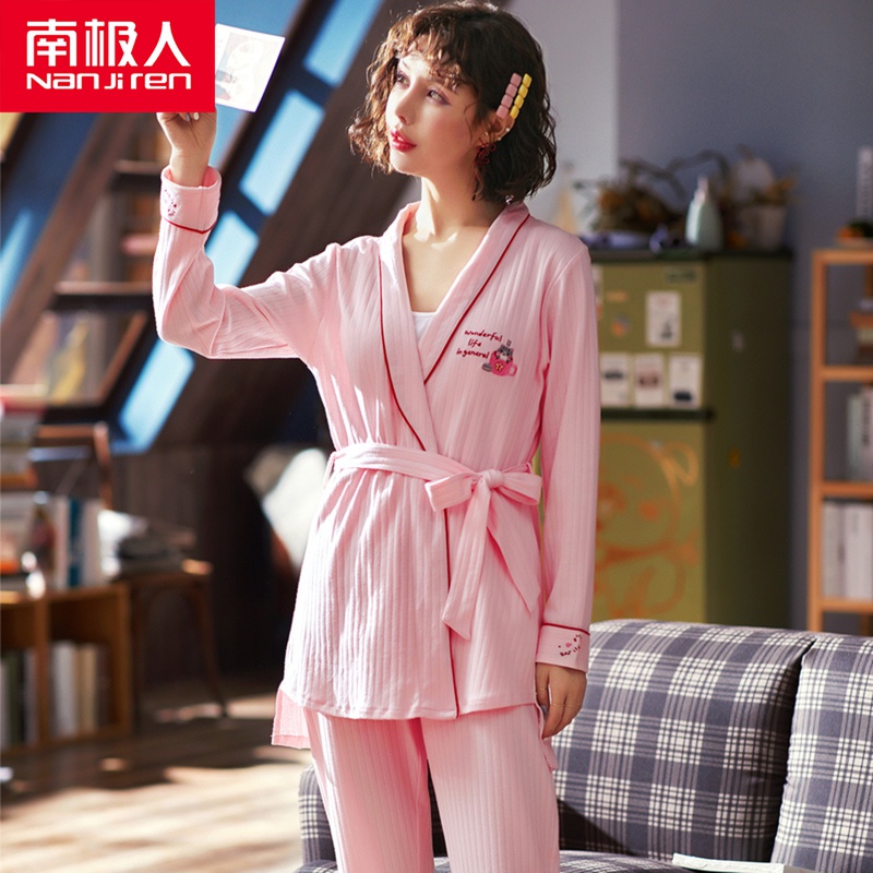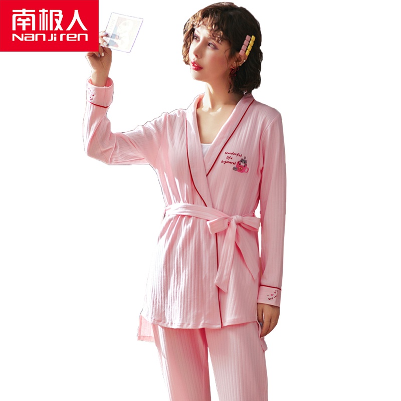 Spring and autumn Korean version of long-sleeved cotton three-piece women's pajamas cotton cute little sexy woman home dress set
