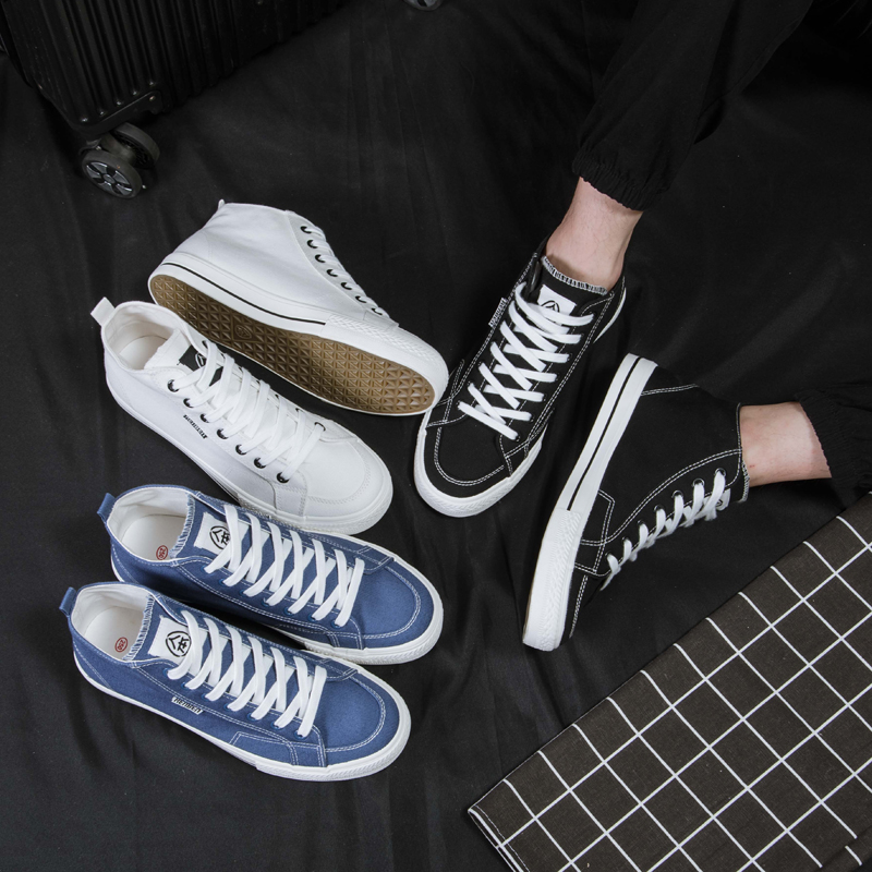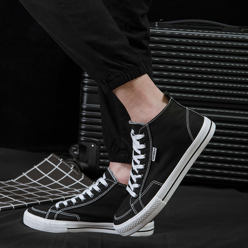 People's 2022 new high-top canvas shoes men's black Korean version of the trend of all-match high-bang board shoes male student cloth shoes