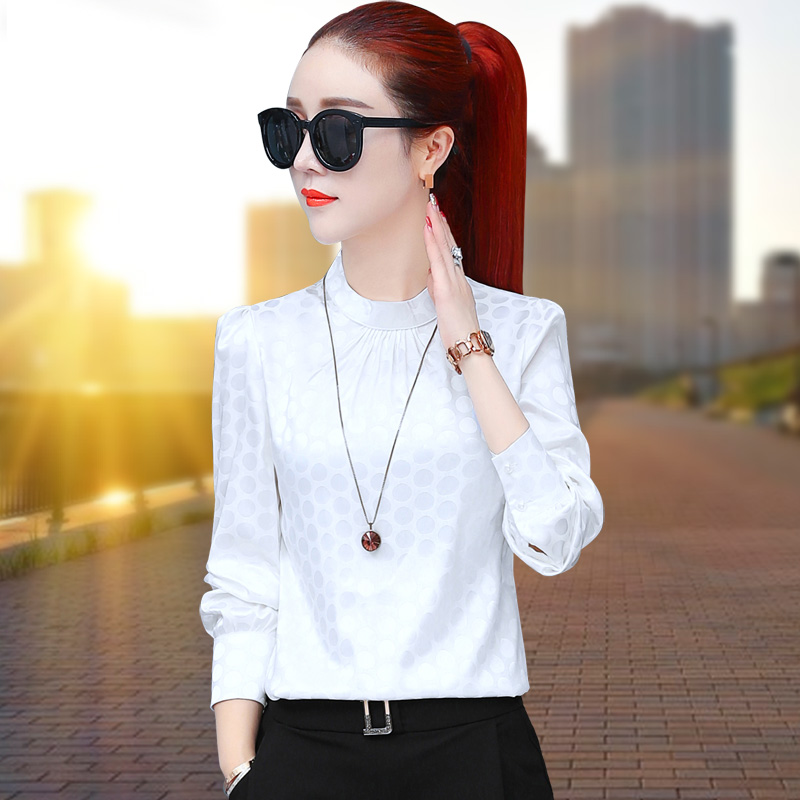 Temperament stand-up collar chiffon shirt women's 2022 autumn new pullover polka dot top professional shirt fashion bottoming shirt