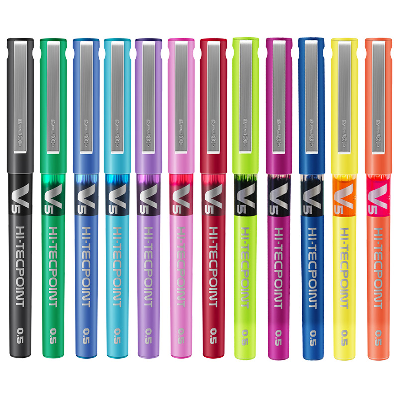Japanese pilot Lily White Color Medium Straight Liquid Type Water-based Ballpoint Pen v5 student with black red blue pink purple multicolored full needle tube bx-v5 water-based pen signature needle tube pen 0 5