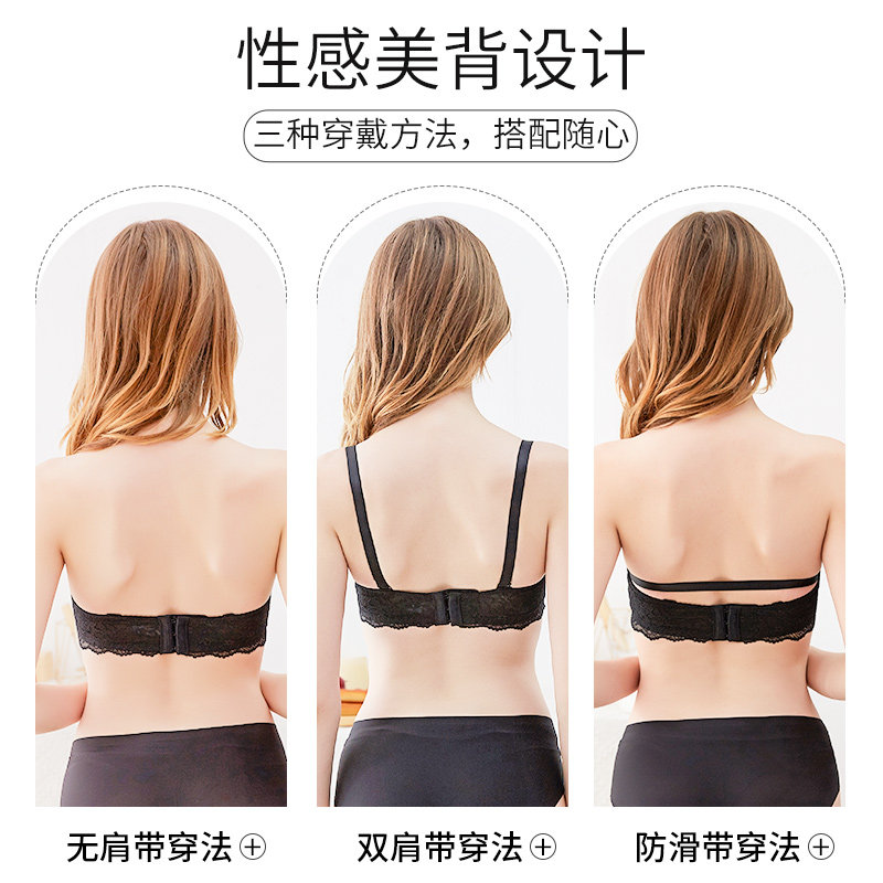 No shoulder strap lingerie women small breasts gather non-slip up for summer sexy beauty back Larope lace lace-lace-lace-breasted bra
