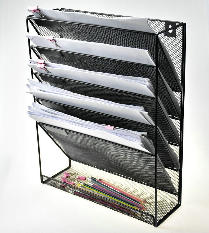 Metal Wrought iron five-layer magazine book rack Hanging wall A4 paper clip box grid storage finishing frame