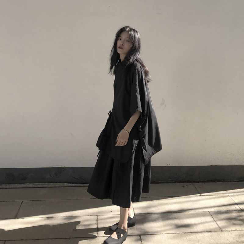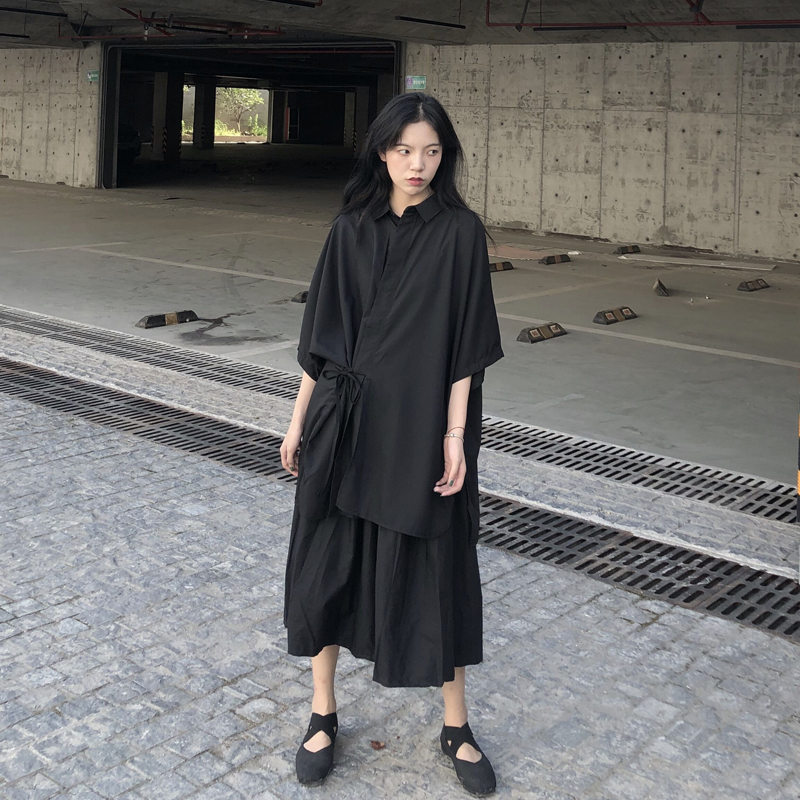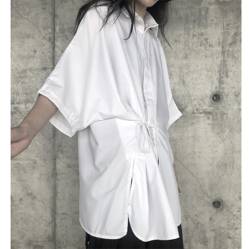 Lu and Shanyu original design Yamamoto dark black deconstructed Japanese strap loose men and women a variety of ways to wear short-sleeved shirts