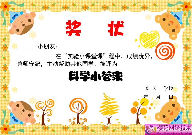 Kindergarten certificate electronic version cute honor certificate graduation certificate custom design A4A3 can be customized to print