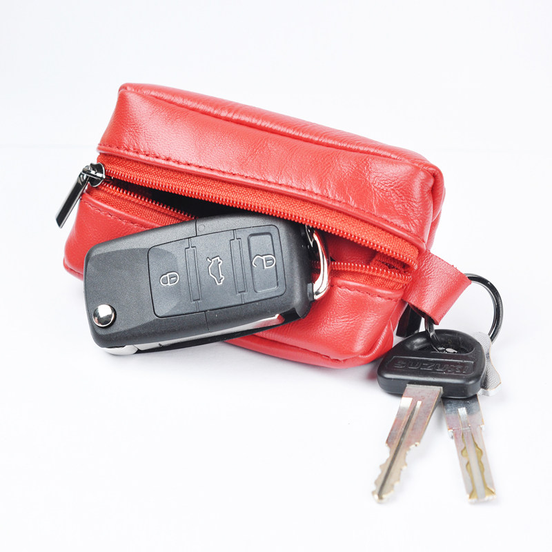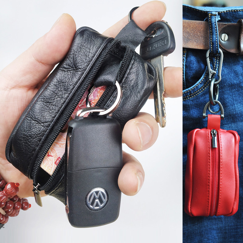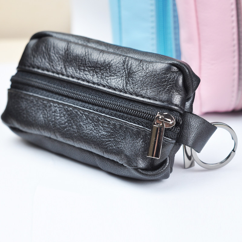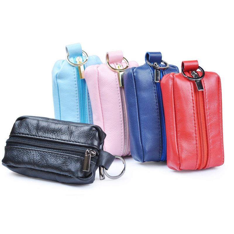 Handcrafted Lamb Leather Car Key Bag Men Little Fresher Double Pull Chain Genuine Leather Girl Zero Wallet Mini Hands purse