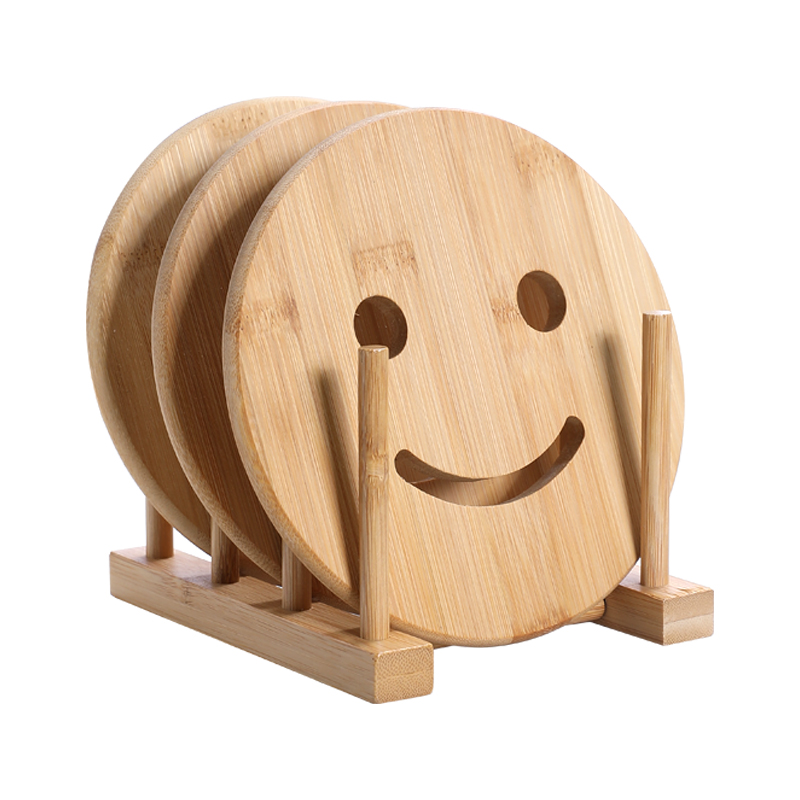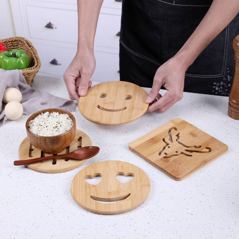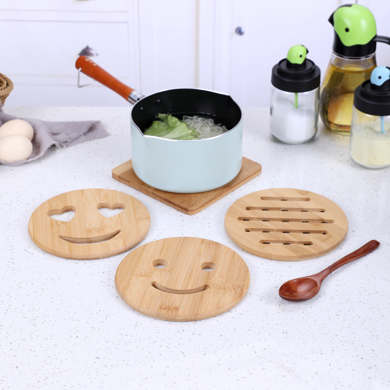 Heat insulation cushion table cushion anti-burn mat thickened smiley face pot cushion Home solid wood Vegetable Mat Casserole Mat large number of bamboo