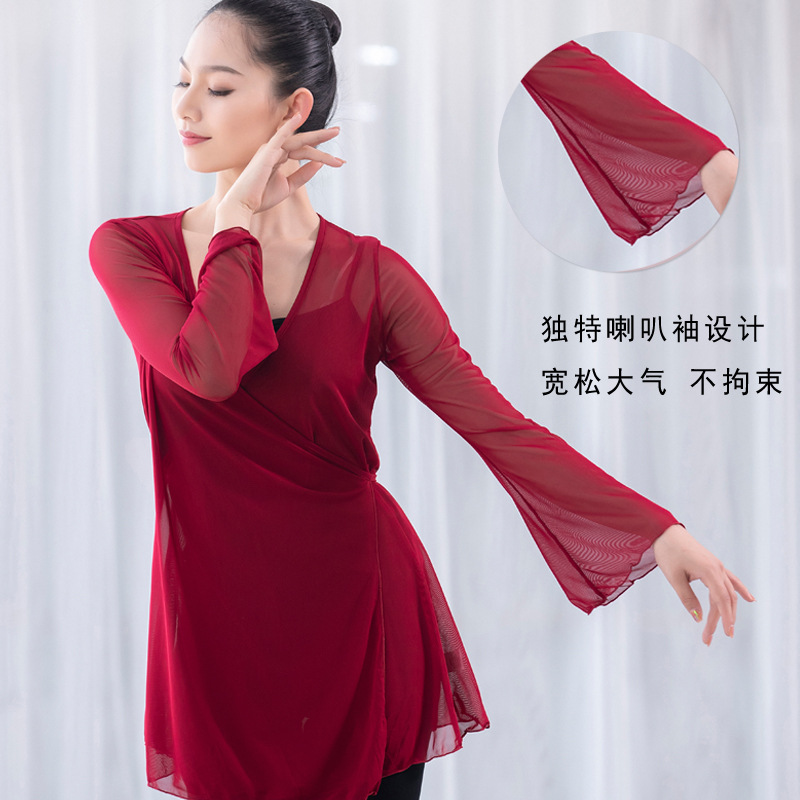 Body rhyme dance dress female large size code ancient dance practice Trumpet Sleeves of the Trumpet Sleeve Art performance to serve female folk dance Out of service