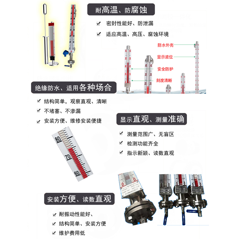uhz magnetic flap liquid level meter with far spread pp magnetic flap level gauge water level gauge panel float top-mounted side loading