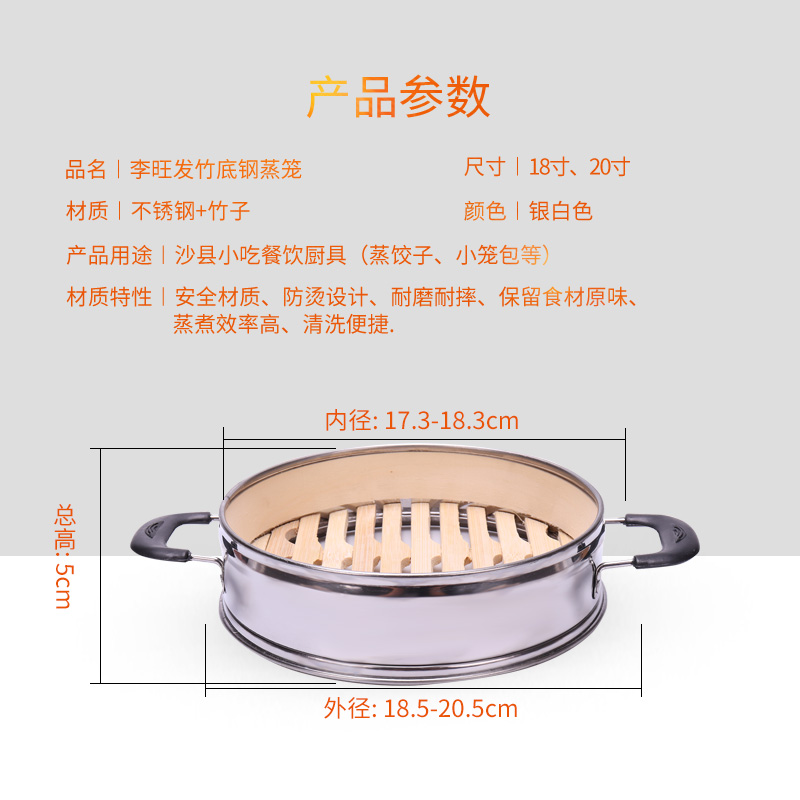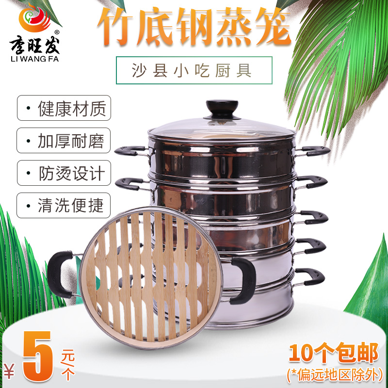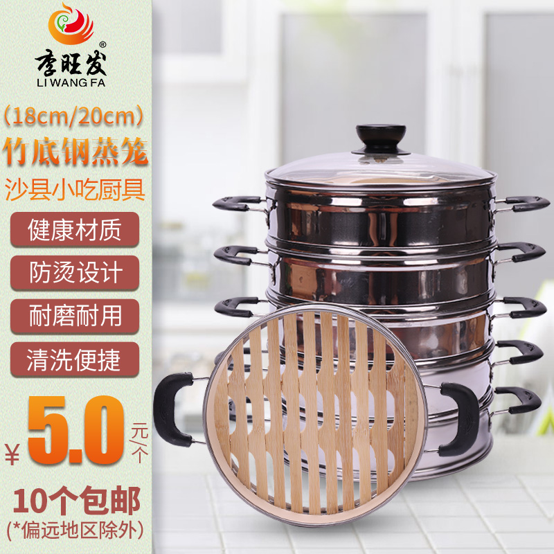 Li Wangfa steamer bamboo bottom stainless steel bamboo steamer bamboo household small steamer bamboo dumpling small steamer commercial