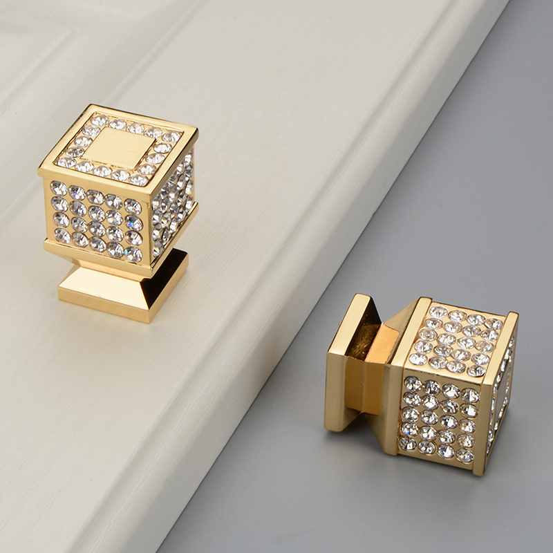 Golden Inlaid Drilling Crystal Handle Good Lepassenger Drawers Single Hole Cupboard Wardrobe Door Handle Square Black Nordic Style