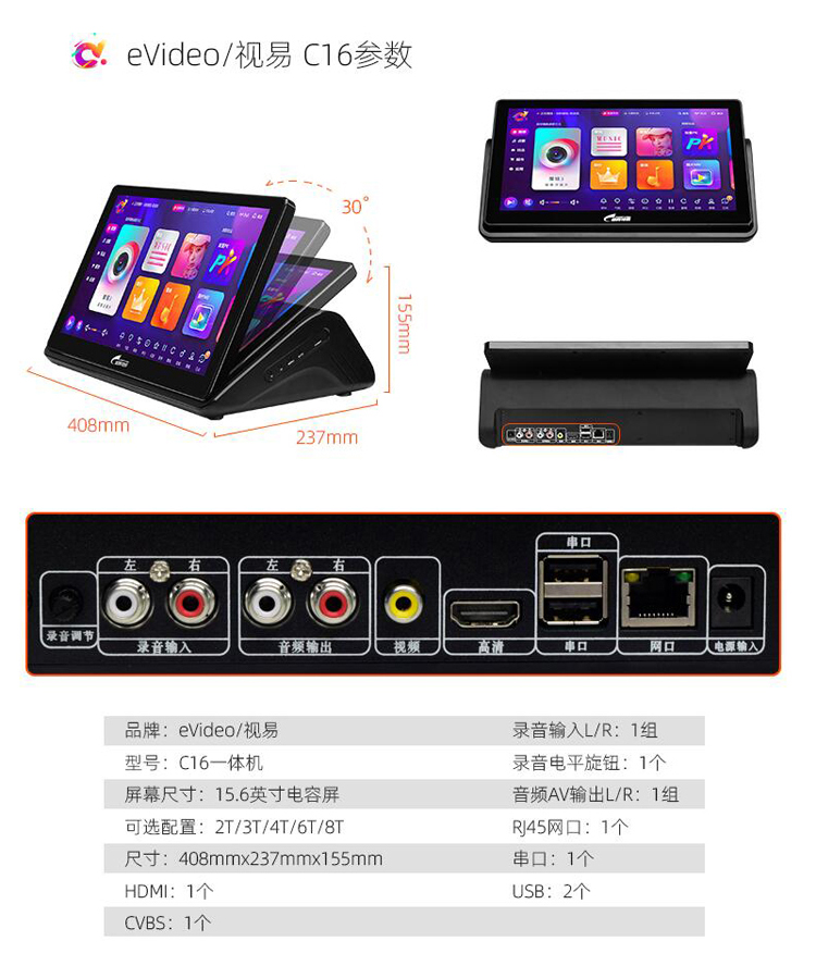 eVideo Vision C16 C10 home ktv karaoke machine capacitive touch screen All home HD karaoke