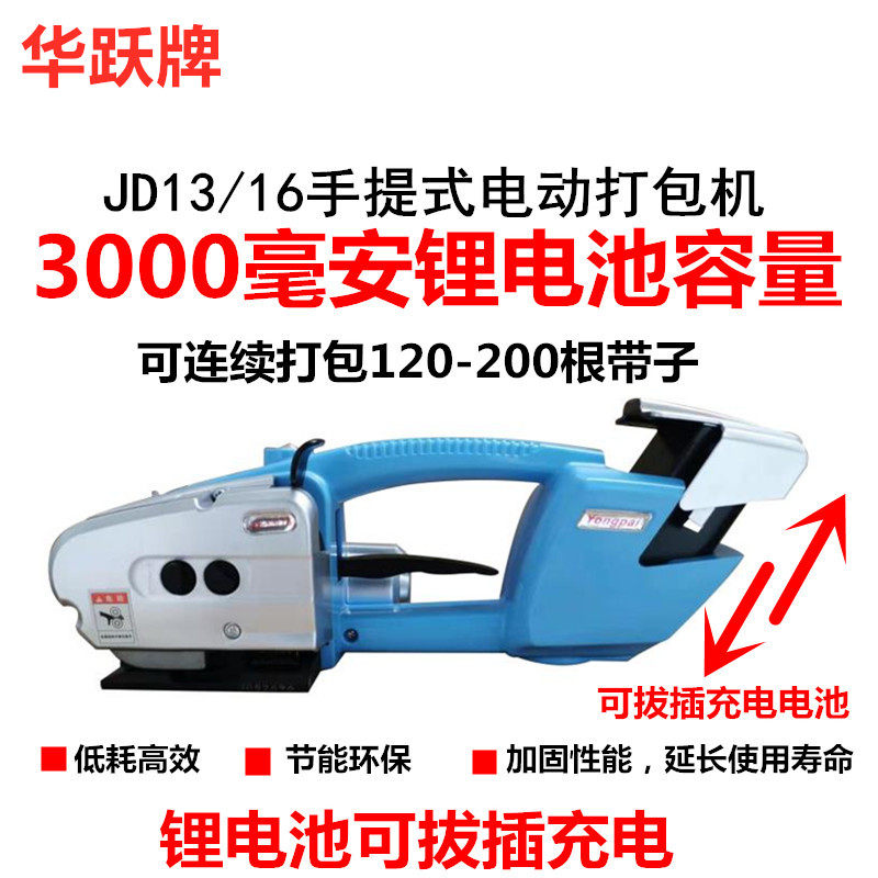 Huayue brand JD13 16 portable portable electric baler automatic pp belt plastic steel belt hot melt buckle free baler Dali stone wooden keel wooden pallet brick strapping machine