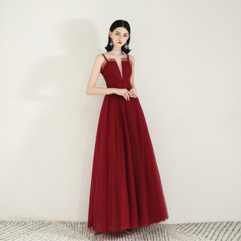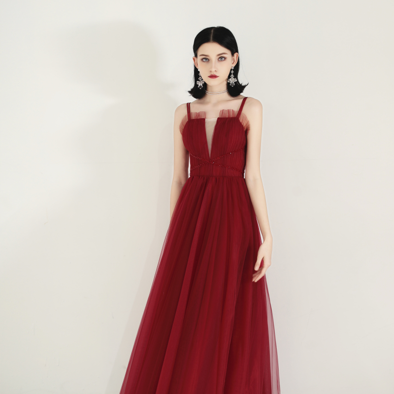 Toast clothing bride 2022 new summer red wedding banquet temperament evening dress suspenders high-quality texture female small