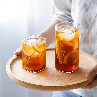 Simple Net red ins Wind glass creative transparent square water cup female household milk drink juice Tea Cup